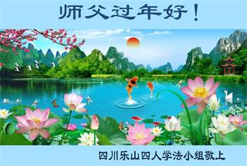 四川乐山一四人学法小姐恭祝慈悲伟大的师父过年好!