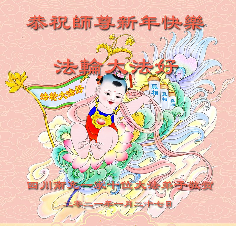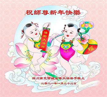 【明慧网二零二一年二月十一日】 四川泸州一大法弟子及家人恭祝师父过年好!
