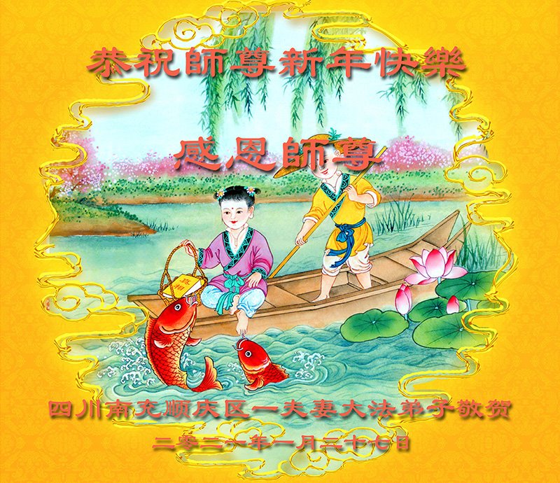 四川南充一夫妻大法弟子恭祝师尊新年快乐!
