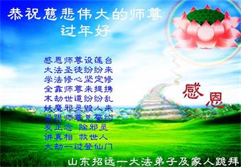 山东省烟台市招远市大法弟子及家人恭祝慈悲伟大的师尊过年好!