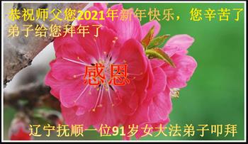 在2021年新年来临之际,弟子恭祝伟大的师尊新年快乐! 辽宁抚顺市一位90岁老年女大法弟子恭祝师父新年快乐!
