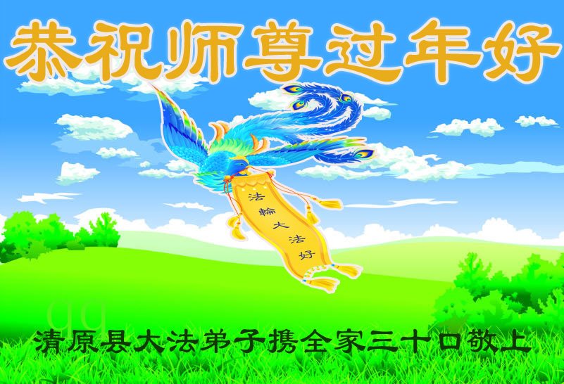 辽宁省抚顺市清原县大法弟子携全家十八口恭祝师尊过年好!