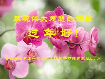 师父您好!弟子们恭祝师父新年快乐! 在新的一年里,跟上正法進程。做好三件事,多救人,跟师父回家!大法弟子跪拜师父! 2021年1月25日 辽宁省营口市盖州一学法小组大法弟子恭祝师父新年快乐!