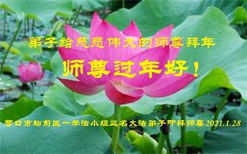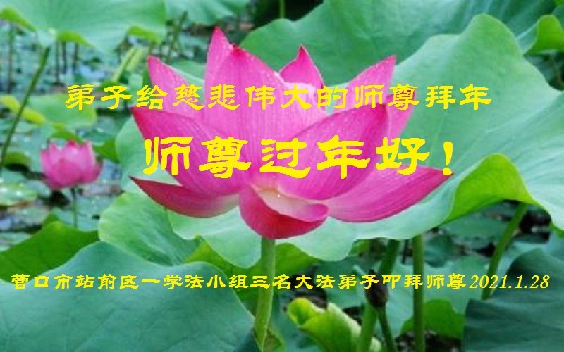 恭祝伟大慈悲的师尊新年好! 辽宁省营口市一学法小组三名大法弟子恭贺伟大慈悲的师尊过年好!