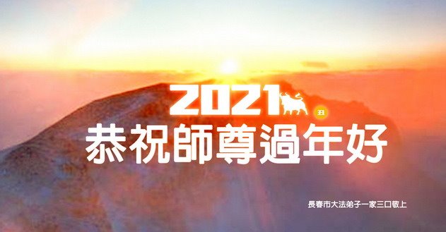 时间过的太快了,2020年转眼过去,又迎来新的一年2021年。在这辞旧迎新的时刻,隔海相望,弟子是多么的盼望师父回家与弟子一起过年。回首这二十多年了,弟子在师尊看护下走到今天,不管时间还有多长,弟子一定听师父的话,走师父安排的路。做好三件事。用实际行动迎接师尊早日归来! 德惠大法弟子 吉林省长春市南关区一老年大法弟子学法小组大法弟子恭祝师尊过年好!