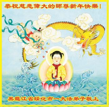 弟子向慈悲伟大的师尊拜年! 感恩师尊慈悲普度!合十! 黑龙江大法弟子恭祝师尊新年快乐!