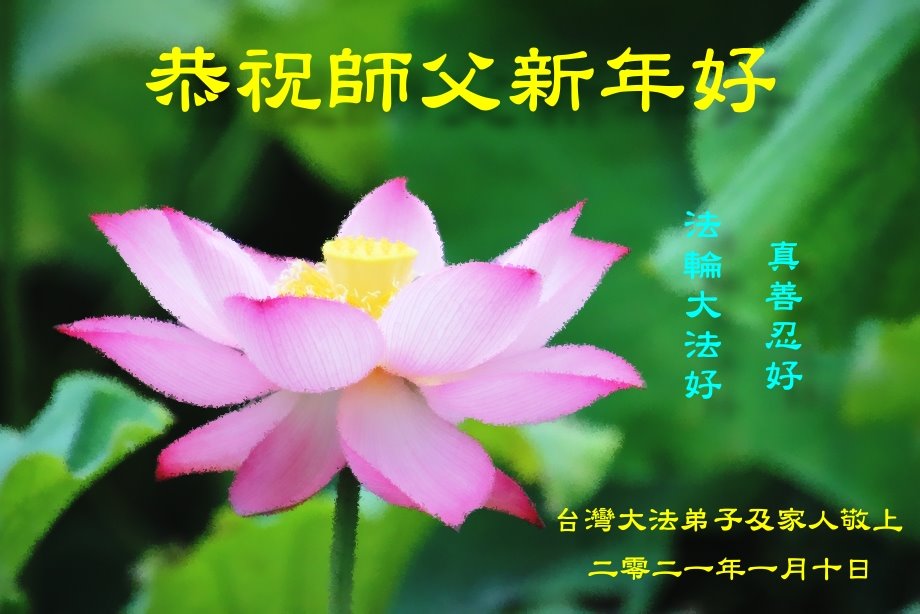 叩拜师尊慈悲苦度!不忘师尊要求做好的三件事。 台湾大法弟子及家人恭祝师父新年好!