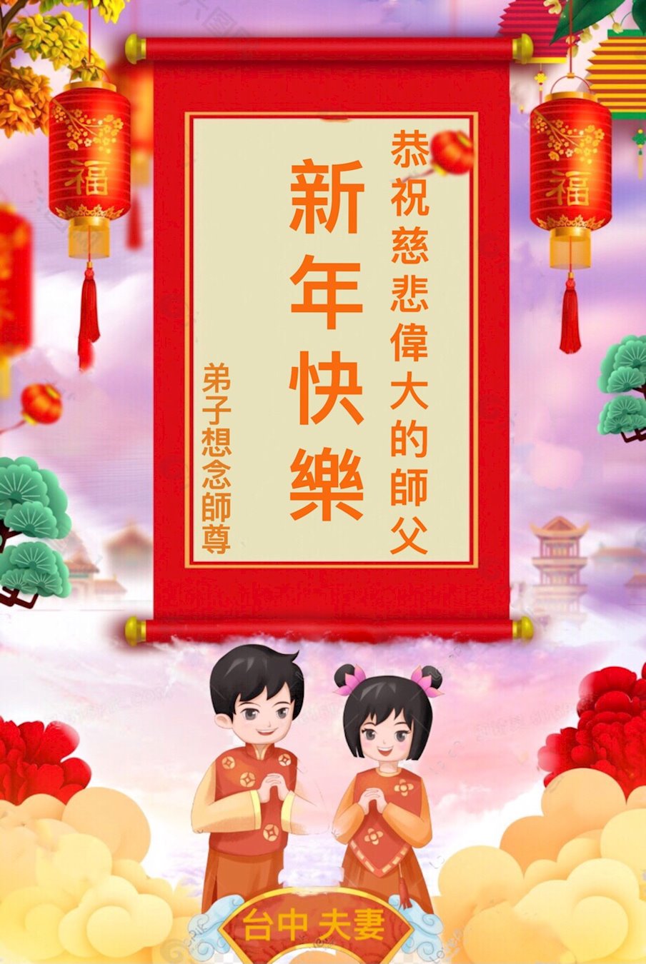 台湾台中一夫妻大法弟子恭祝慈悲伟大的师尊新年快乐!