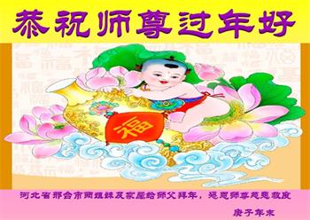 师父您辛苦啦!在的新一年里,弟子们一定做好三件事,回报师尊的慈悲救度之恩。 弟子跪拜师尊!合十。 河北省邯郸市成安县全体大法弟子恭祝师尊新年好!