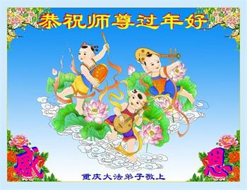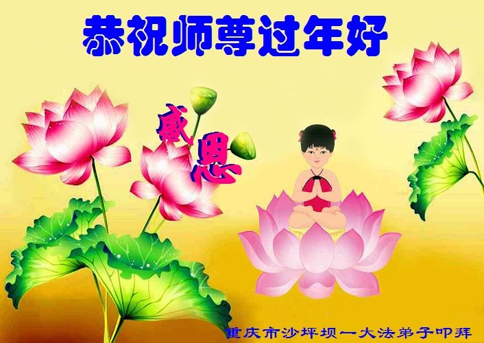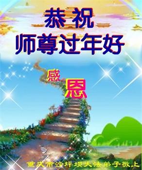 恭祝慈悲伟大的师父过年快乐! 感恩师尊的洪恩浩荡!为宇宙众生的得救,为新宇奠基创世,历尽艰辛,呕心沥血!弟子们遵循师尊的教诲,在最后时间不多的日子里,尽力而为,多救一个人,让师父多一份欣慰! 重庆大法弟子恭祝慈悲伟大的师尊过年好!