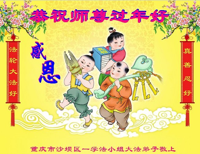 重庆一家大法弟子感谢师父的慈悲的救度,恭祝师父新年快乐! 重庆市大足区一学法点全体大法弟子恭祝师尊新年快乐!