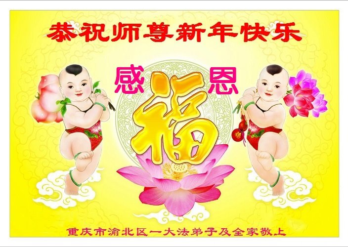 重庆市渝北区一大法弟子及全家恭祝师尊新年快乐!