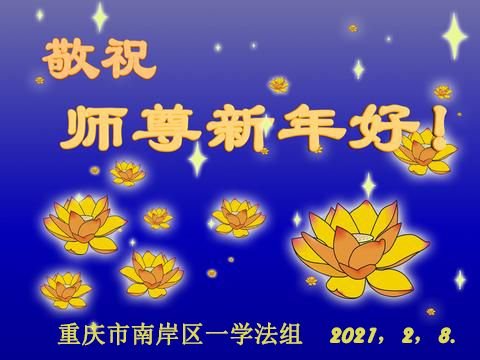 恭祝慈悲伟大的师尊新年快乐!师尊辛苦了! 重庆一学法小组叩谢师恩! 二零二一年二月 重庆市江北区一大法弟子全家恭祝师尊新年快乐!