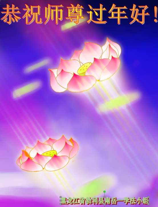 在二十三年的修炼日子里,弟子时时都沐浴在师尊的洪恩浩荡中,弟子无法用人类的语言表达心中的感恩!在新的一年里,弟子一定要全身心的做好三件事,修好自己,时时向内找,兑现自己的誓约,不辜负师尊的慈悲苦度,跪拜师尊!合十。 黑龙江省伊春市金林区一学法小组大法弟子恭祝师尊新年快乐!