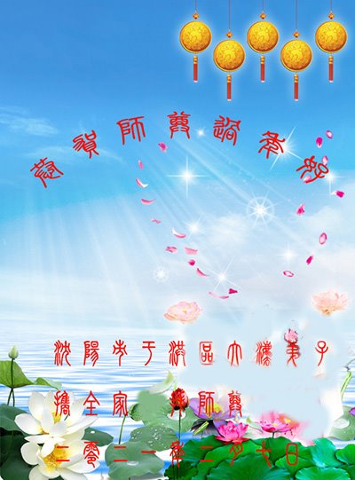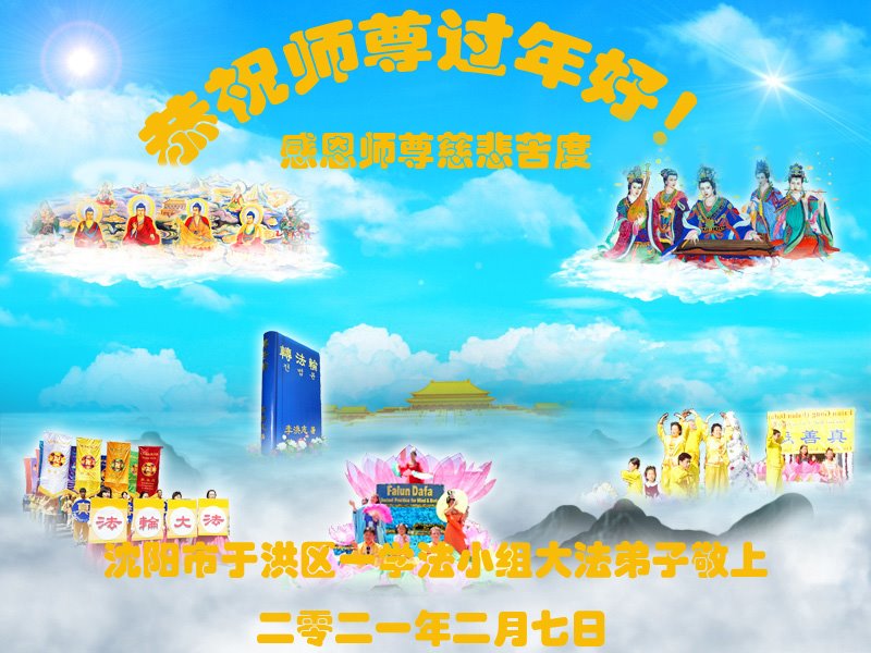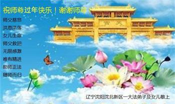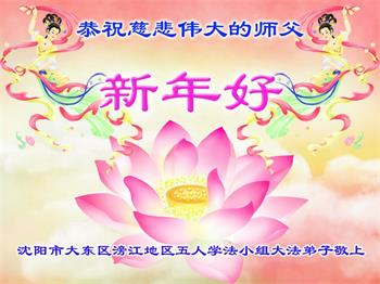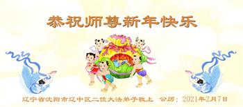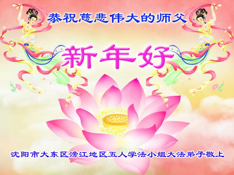 辽宁省沈阳市大东区滂江地区五人学法小组大法弟子给师父拜年: 恭祝慈悲伟大的师父新年好! 辽宁省沈阳市辽中区大法弟子恭祝恩师新年快乐!