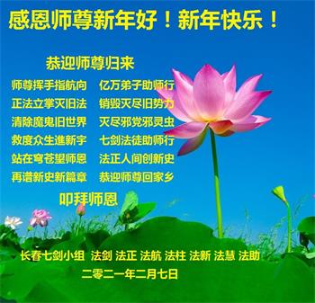 【明慧网二零二一年二月十一日】 吉林省长春一学法小组全体大法弟子恭祝师尊新年快乐!