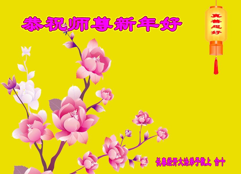 我们十五位大法弟子绝大多数是老年人,因为她们平时不上网,由我替她们恭祝慈悲伟大的师父新年快乐!谢谢师父的慈悲苦度! 吉林省长春大法弟子恭祝师尊过年好!