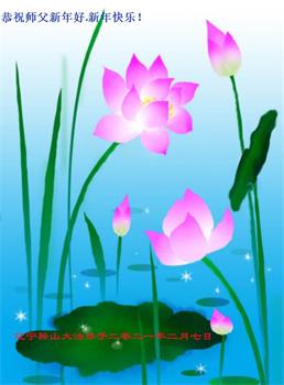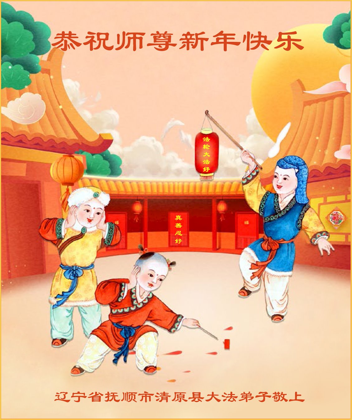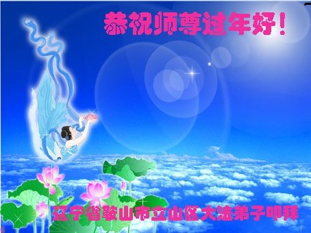 恭祝慈悲伟大的师尊新年快乐! 师尊辛苦了!谢谢师尊! 辽宁省抚顺市清原县一大法弟子敬上 辽宁大法弟子恭祝师尊新年快乐!