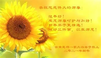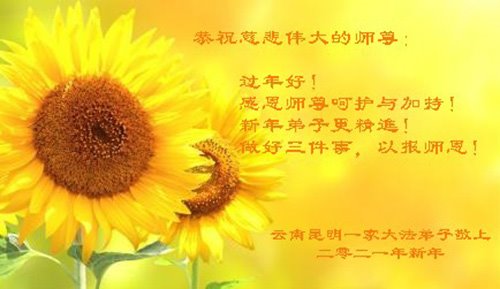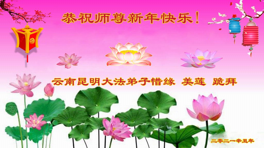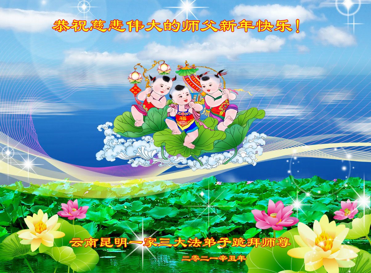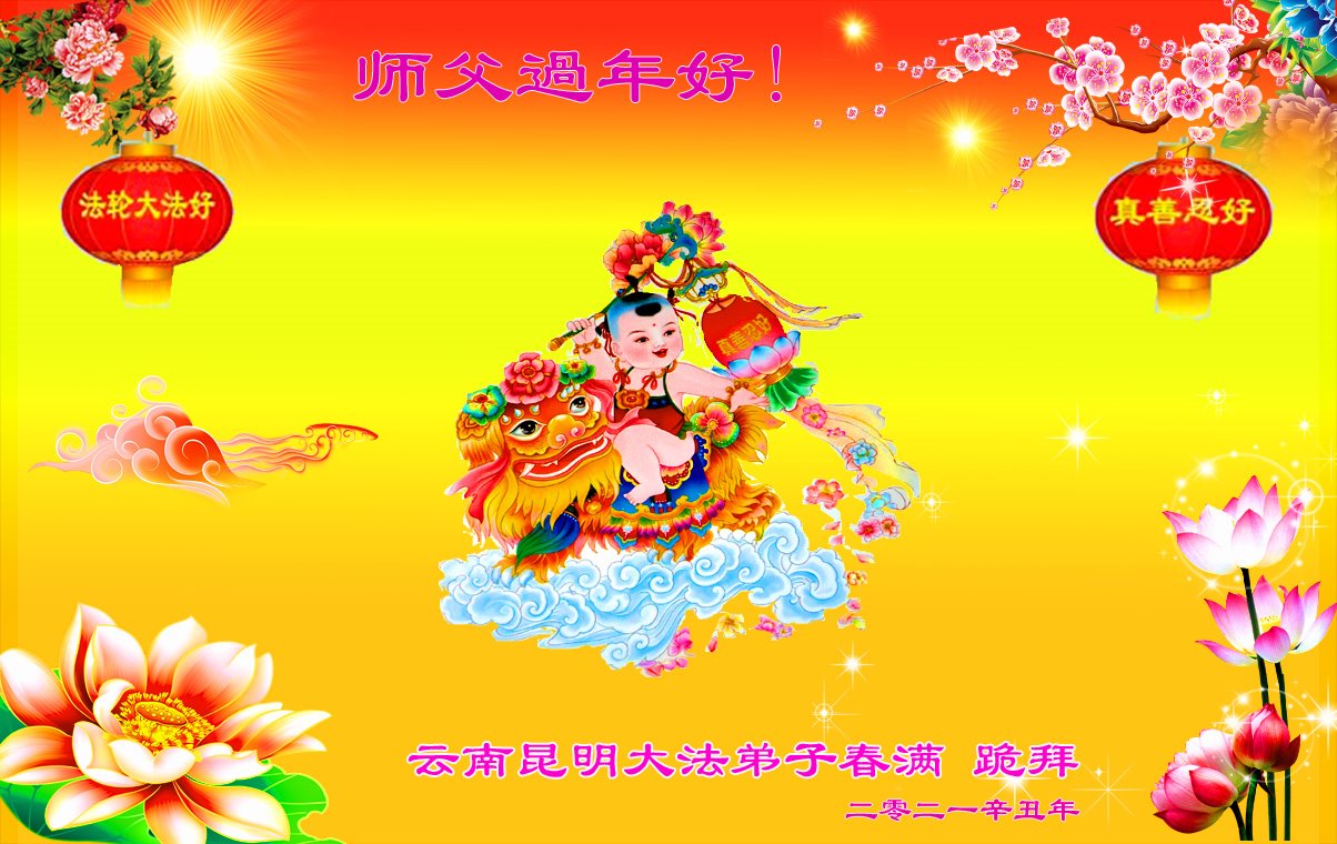 【明慧网二零二一年二月十一日】 云南昆明一家大法弟子恭祝慈悲伟大的师尊过年好!