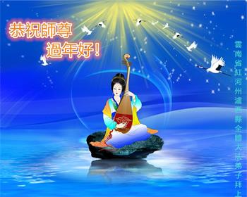 在新年来临之际,云南省昆明市官渡区部份大法弟子向师尊拜年!恭祝师尊新年快乐! 一年又一年 年年师看护 弟子记誓约 三件事不怠 愿众生得救 迎光明世界 云南省红河洲个旧市大法弟子恭祝慈悲伟大的师尊过年好!