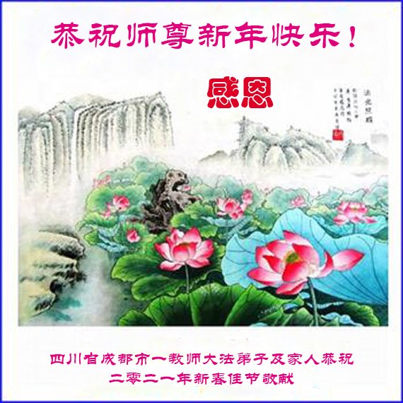 四川省成都市一教师大法弟子及家人恭祝师尊新年快乐!