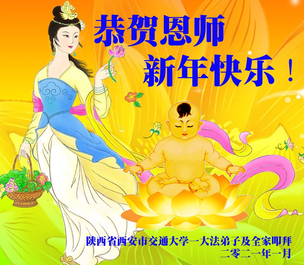 陕西省西安市交通大学一大法弟子及全家恭贺恩师新年快乐!