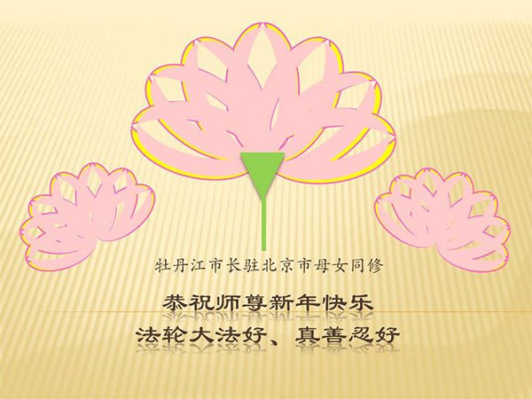 【明慧网二零二一年二月十二日】 牡丹江市长住北京的母女大法弟子恭祝师尊新年快乐!