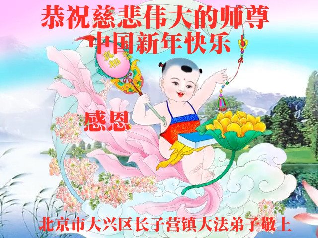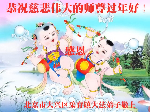 师父辛苦了!我们全家给师父拜年:师父新年好! 合十!叩拜师尊! 北京大兴区两名大法弟子恭祝慈悲伟大的师尊过年好!