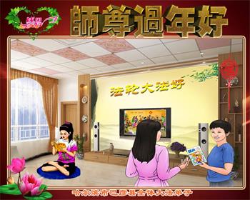 恭祝师尊过年好! 黑龙江省哈尔滨市香坊区一家三位大法弟子恭祝伟大慈悲的师尊新年好!