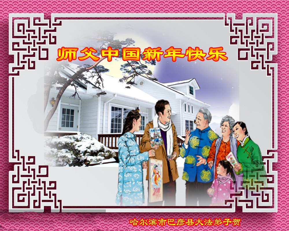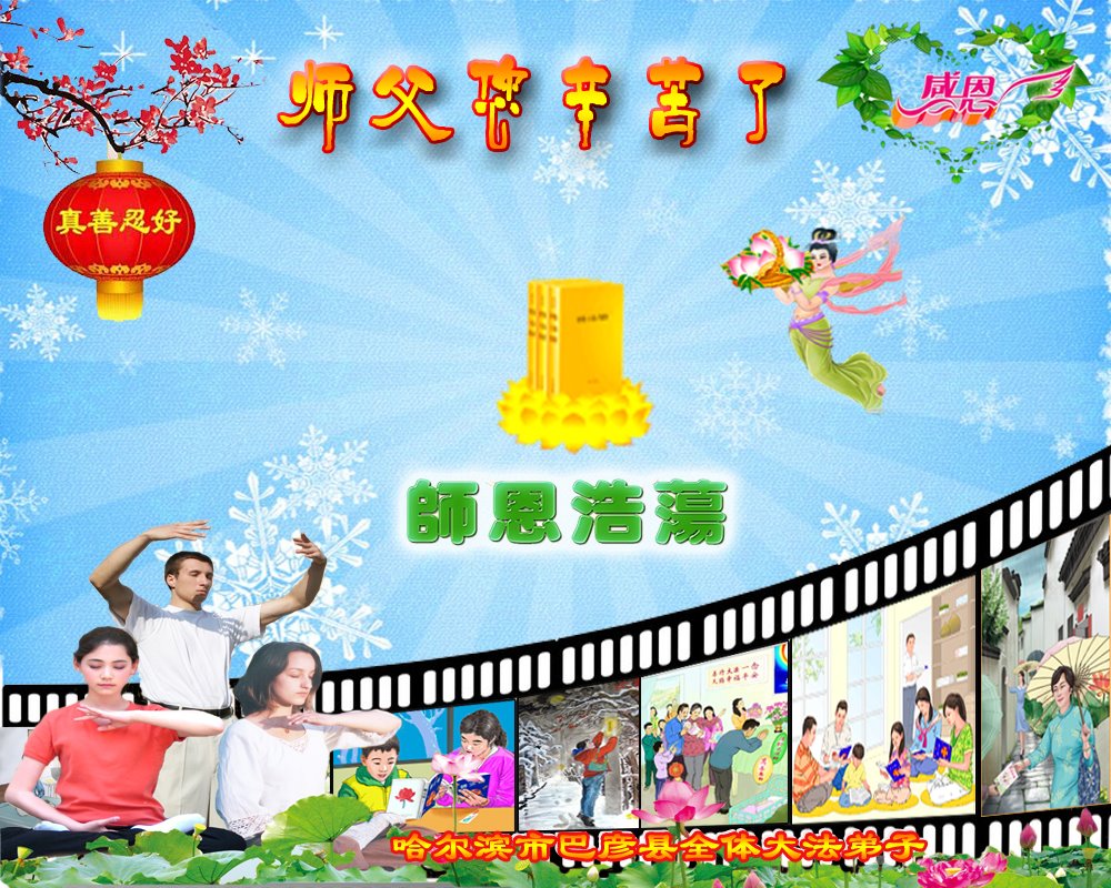法轮大法好!真善忍好! 黑龙江省哈尔滨市巴彦县全体大法弟子恭祝师父过年好!