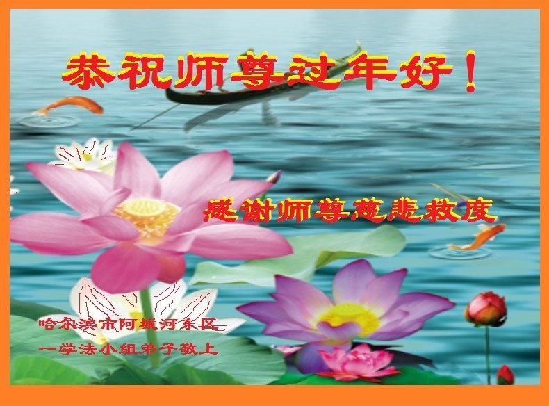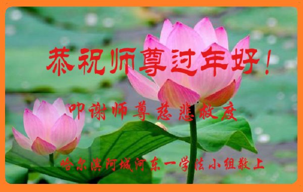 恭祝师尊过年好!叩谢师尊慈悲救度之恩! 哈尔滨阿城区河东一学法小组大法弟子敬上 黑龙江省哈尔滨市阿城区一学法小组大法弟子恭祝师尊过年好!