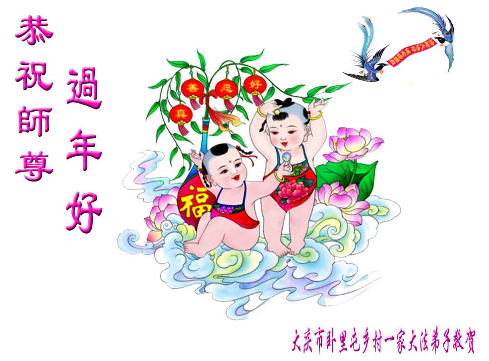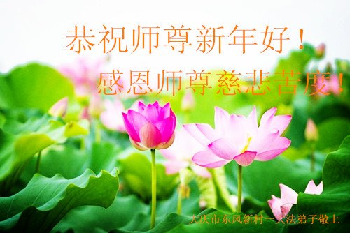 恭祝师尊新年好!感恩师尊慈悲苦度! 大庆市东风新村一大法弟子敬上 黑龙江省大庆市八百垧大法弟子恭祝师尊过年好!