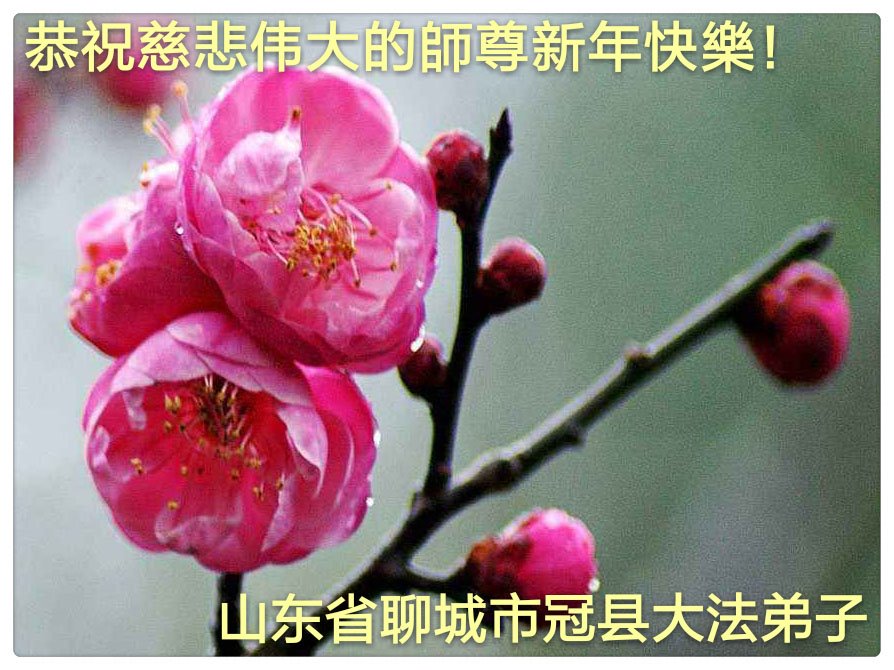 我们会牢记师尊的教诲,做好三件事,跟上正法進程,救度更多的众生,把法轮大法的美好撒向人世间,兑现誓约,圆满随师还。 山东省聊城市冠县大法弟子恭祝慈悲伟大的师尊新年快乐!