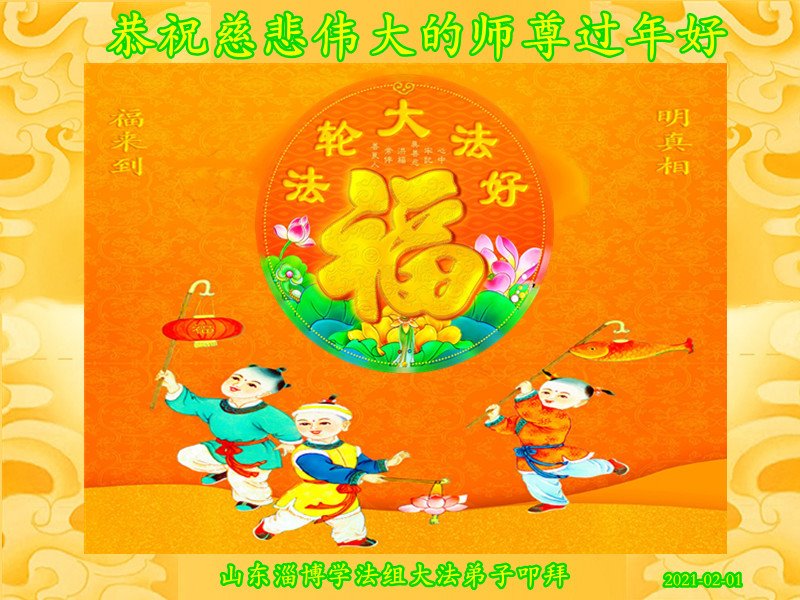 山东省淄博市大法弟子恭祝慈悲伟大的师尊新年快乐! 山东淄博一学法组大法弟子恭祝师尊过年好!