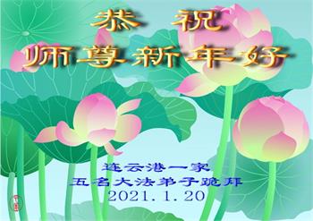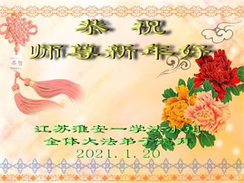 恭祝师尊过年好!感谢师尊救度之恩! 江苏省连云港市一家五名大法弟子跪拜 2021年1月20日 江苏省淮安市全体大法弟子恭祝师尊新年快乐!
