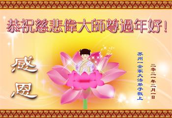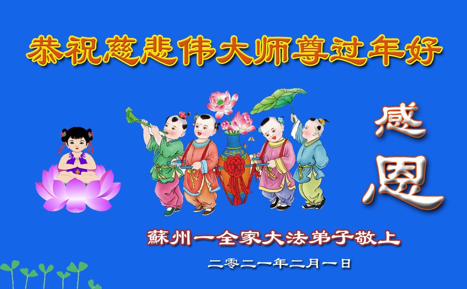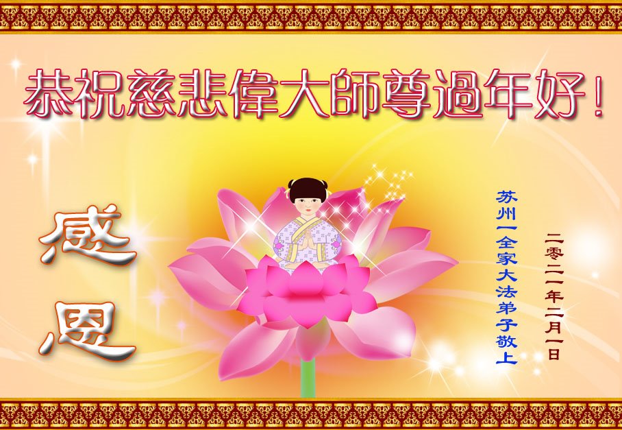 恭祝慈悲伟大师尊过年好! 苏州一全家大法弟子敬上 江苏省苏州一全家大法弟子恭祝慈悲伟大师尊过年好!