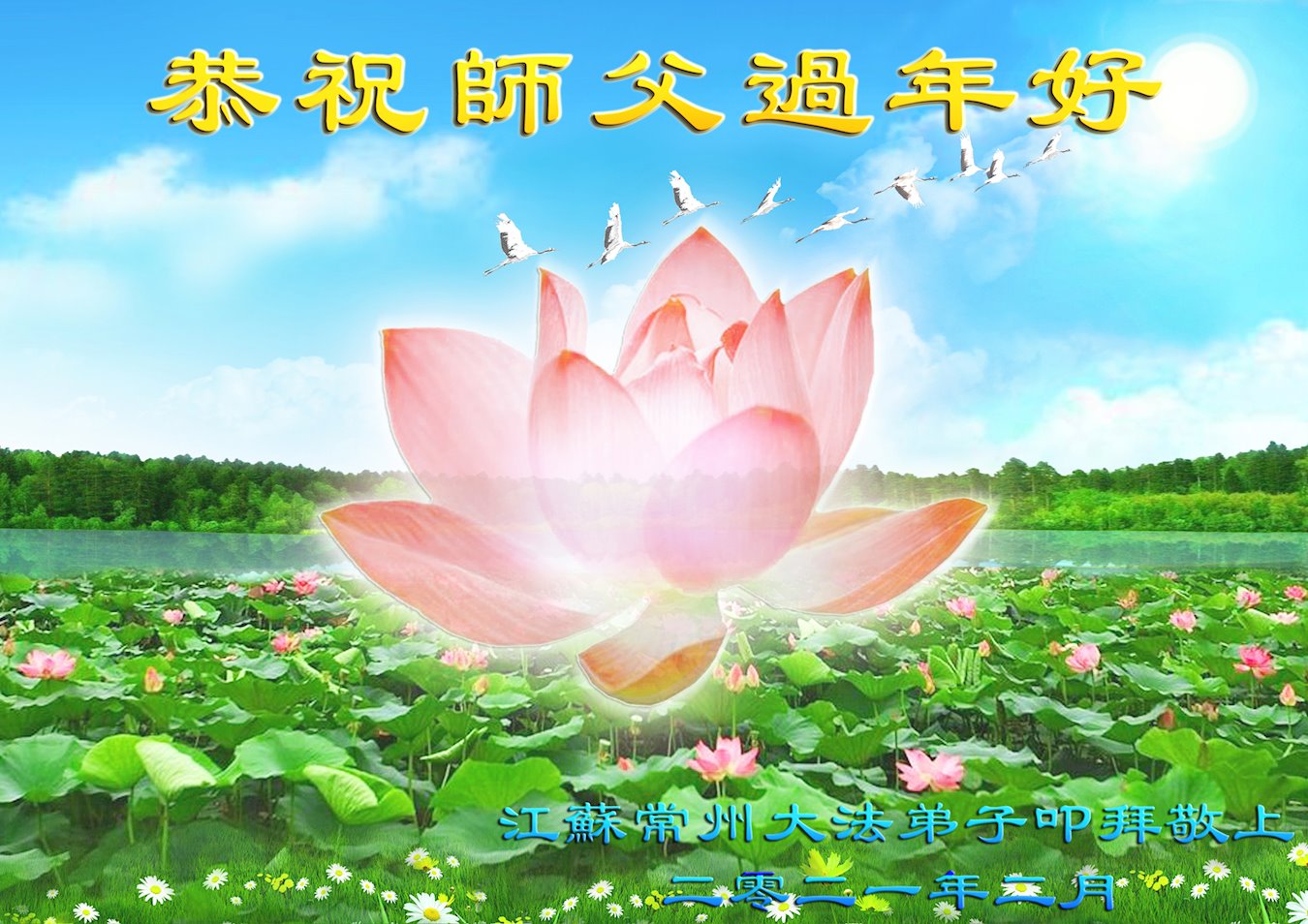 恭祝师尊过年好! 江苏一家七口大法弟子敬上 2021年2月 江苏常州一个四人学法小组大法弟子恭祝慈悲伟大的师尊过年好!
