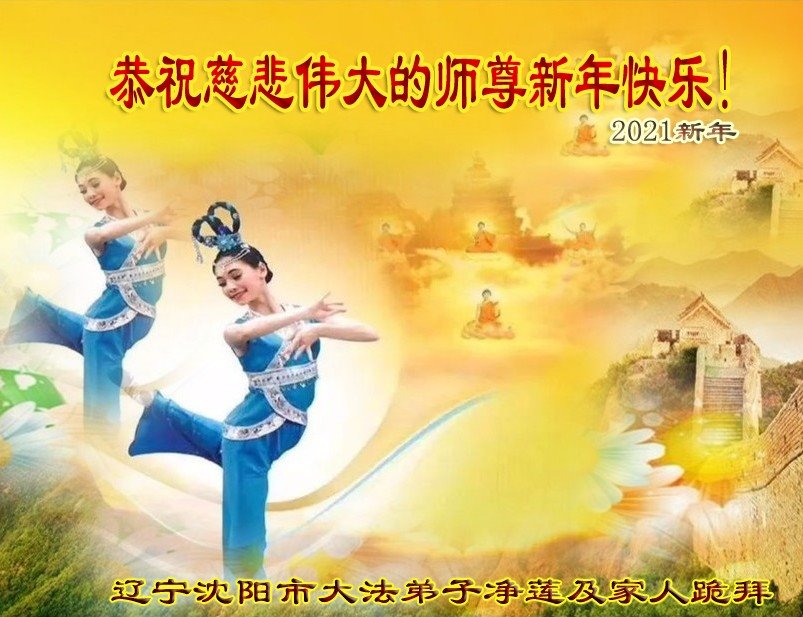 恭祝慈悲伟大的师尊新年快乐!弟子全家感恩师尊的慈悲看护。谢谢师尊,师尊辛苦啦! 辽宁沈阳于洪大法弟子全家叩拜师恩! 辽宁省沈阳市沈北新区辉山地区全体大法弟子给师父拜年!