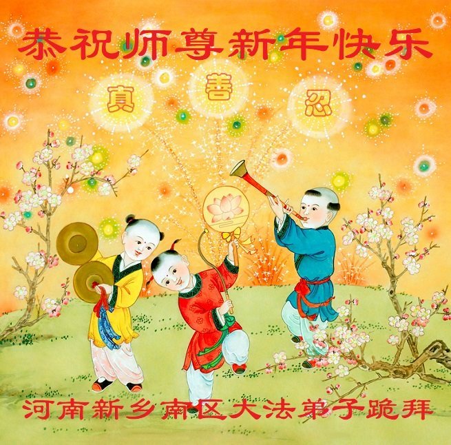 师尊您辛苦了!祝师父新年快乐! 弟子们要严肃对待修炼,听师父话、修好自己多救人给师父回家。合十! 河南洛阳市洛宁县全体大法弟子恭敬师父! 河南新乡一学法小组大法弟子恭祝师尊新年好!
