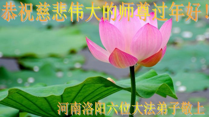 恭祝师尊新年快乐! 我们都很想念您! 师父给了我们大法,给了我们智慧,给了我们健康,给了我们救人的本事。我们没办法报答师恩,我们还有许多没修好的地方,我们要继续修炼,把自己修的更好一点,等着师父回来团聚的那一天。 新乡市一学法小组全体大法弟子叩拜谢恩 河南洛阳六位大法弟子恭祝慈悲伟大的师尊过年好!
