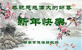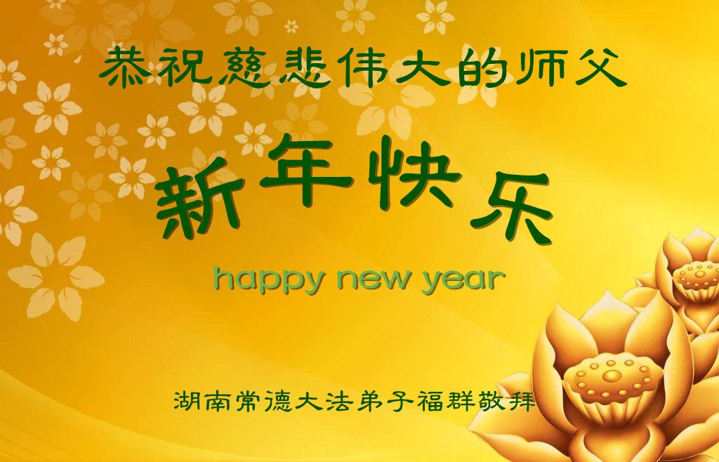 湖南常德大法弟子恭祝慈悲伟大的师尊新年快乐!