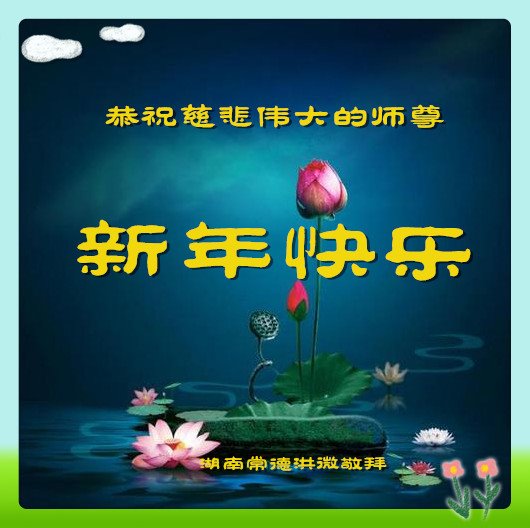 师父辛苦了!用尽人间的语言也无法表达对师父的感恩!全家人跪拜。 湖南省全体大法弟子恭祝师尊新年快乐!