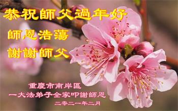 师尊新年好! 弟子感恩师尊,精進实修。做好三件事,跟师父回家。 重庆市江北区一大法弟子恭祝慈悲伟大的师尊过年快乐!