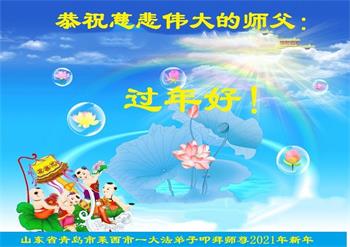 山东省青岛市大法弟子恭祝慈悲伟大的师尊过年好!