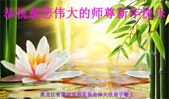恭祝慈悲伟大的师尊新年快乐! 黑龙江省黑河市孙吴县全体大法弟子敬上 二零二一年二月三日 黑龙江省黑河市孙吴县全体大法弟子恭祝师尊新年快乐!