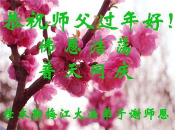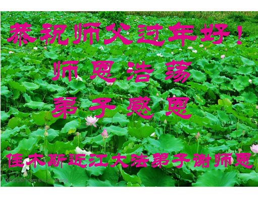 恭祝师父过年好! 在正法最后所剩不多的时间里,近江的大法弟子:抓紧修好自己,认真学好法,时时向内找,抓紧分秒多多救度众生,听师父话,配合好整体,兑现大法弟子的使命与誓约,以最大的精進之心回报师恩,做一个真修的大法弟子助师正法,同返家园! 佳木斯近江大法弟子谢师恩! 黑龙江省佳木斯梅江大法弟子恭祝师父过年好!