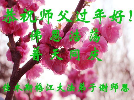 恭祝师父过年好!弟子将永远听师父话,修好自己,多多救人,跟师父一路正法圆满回家! 黑龙江省佳木斯大法一粒子恭祝师父过年快乐!