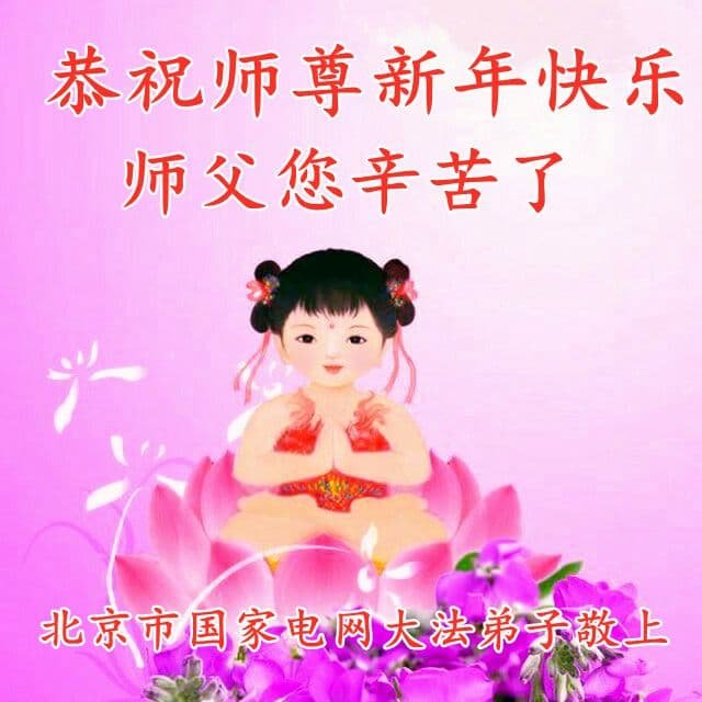 慈悲伟大的师尊您好!您辛苦了!感恩师尊慈悲苦度!恭祝师尊新年快乐!请师尊放心,弟子一定做合格弟子,走好最后的修炼路,紧紧跟上正法進程,和师尊回家! 北京市国家电网大法弟子恭祝师尊新年快乐!