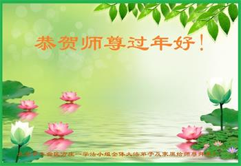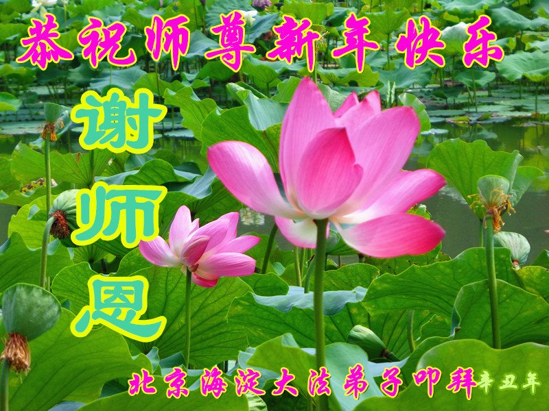 师尊您为弟子、为众生操尽了心,您辛苦了!感恩师尊的慈悲救度!弟子每天都沐浴在师尊的洪恩浩荡中,生命在大法净化、升华。弟子唯有修好自己,不忘使命,兑现誓约,以报师恩! 北京市朝阳区老年学法小组及小同修恭祝师尊新年快乐!