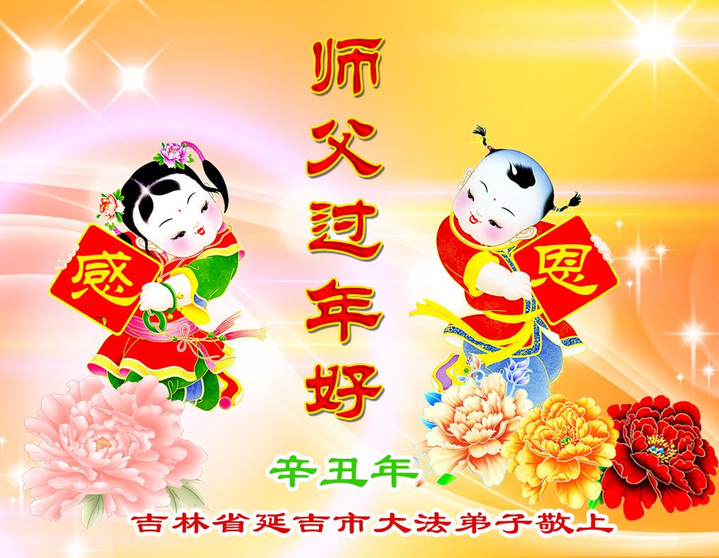 吉林省延边州延吉市大法弟子恭祝慈悲伟大的师尊新年快乐!
